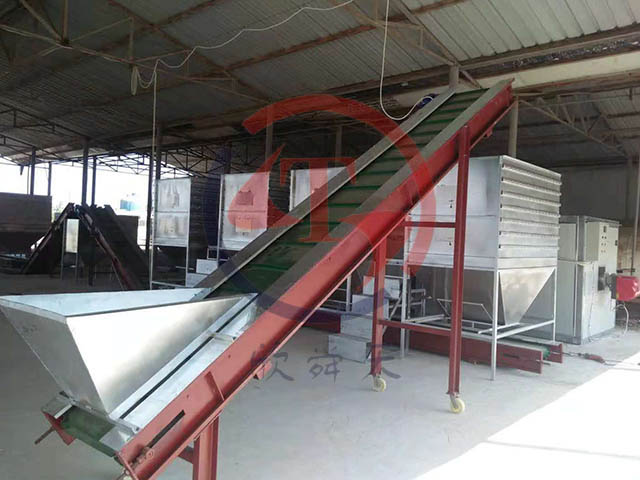 換熱式燃氣熱風爐(40萬kcal),風機18.5kw,送風管、多層翻轉式烘干機4臺、溫控柜、上料輸送機2臺,出料輸送機、料倉等。